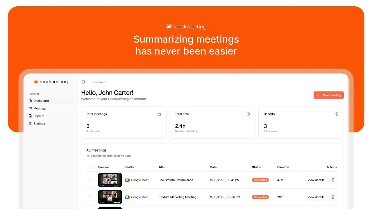 With ReadMeeting, summarizing your meetings is faster, easier, and more efficient than ever.